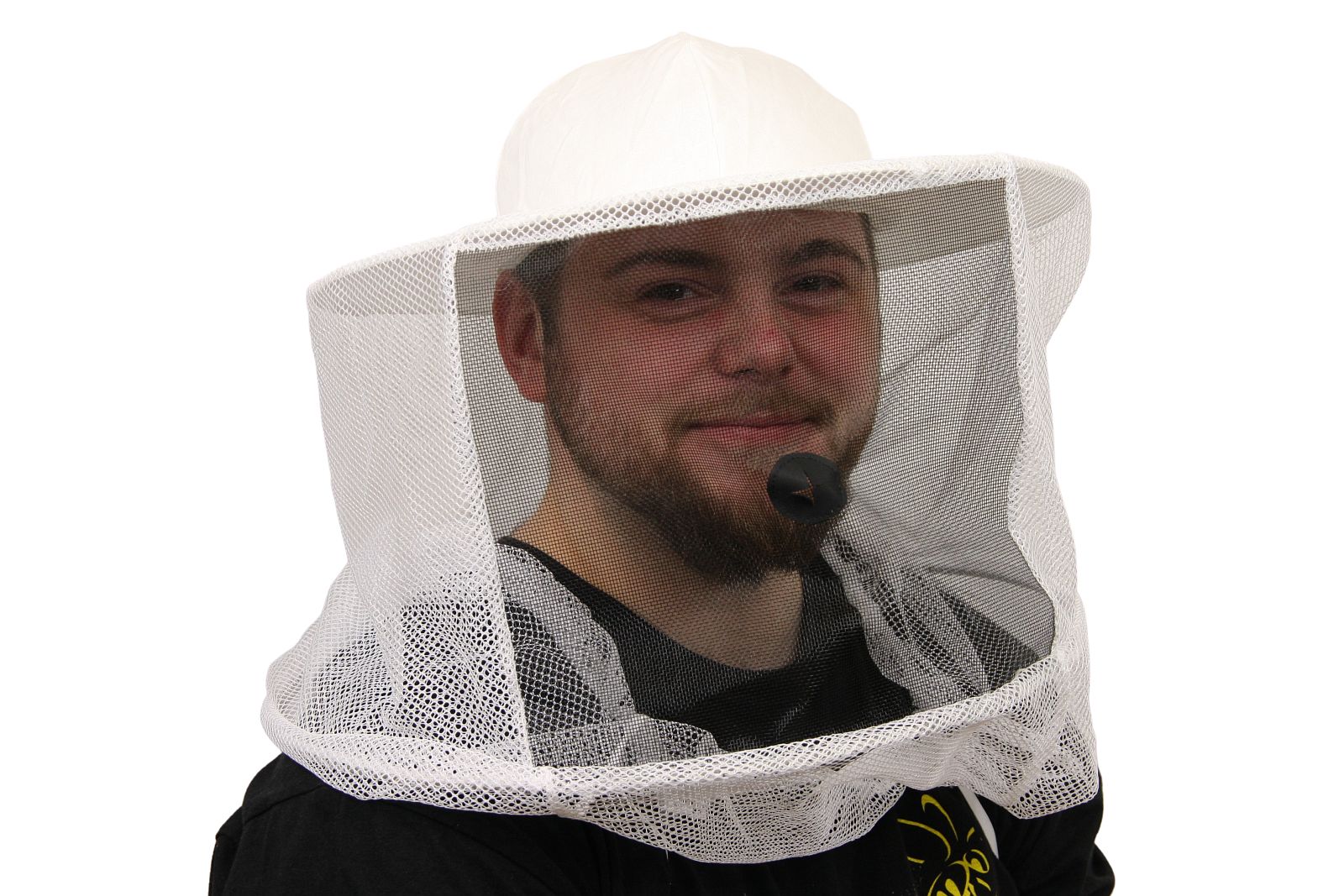Praktische Kombination aus Imkerhut und Schlüpfschleier. Fest miteinander vernäht inkl. Pfeiffenloch und Distanzring, mit Gummischlaufen zum Reinschlüpfen.