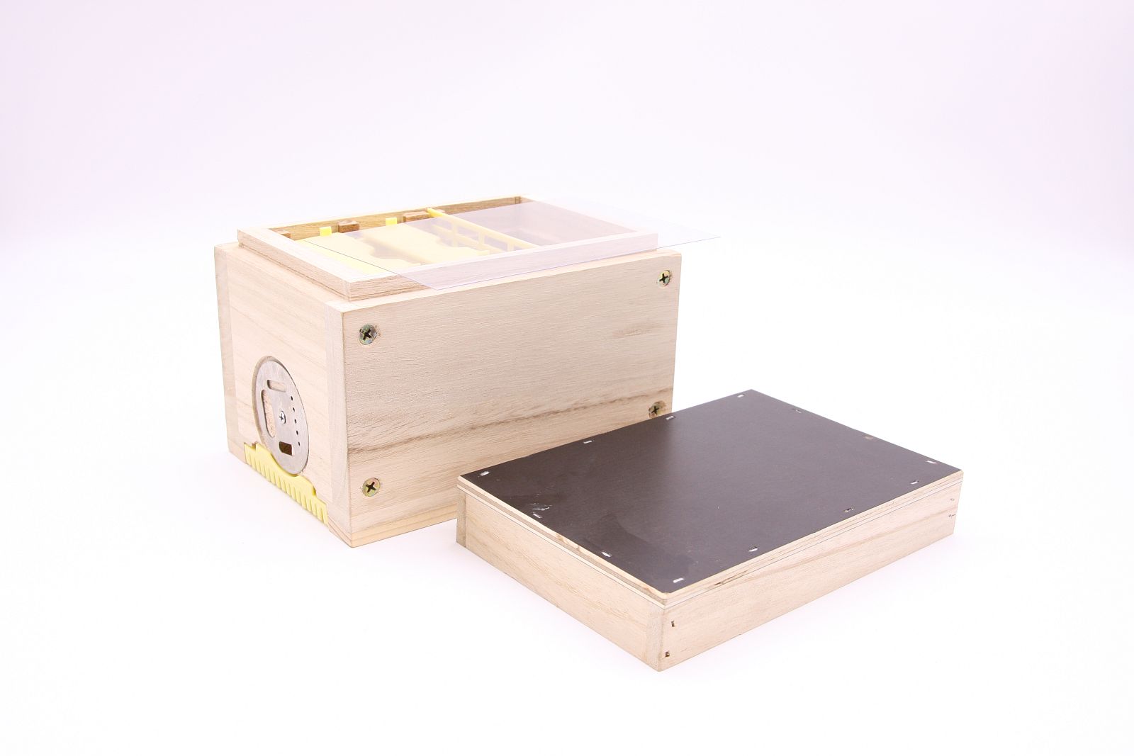 Kompaktes Begattungskästchen nach dem Vorbild des Lüneburger "Pütschers" inkl. abgetrennter Futterkammer.