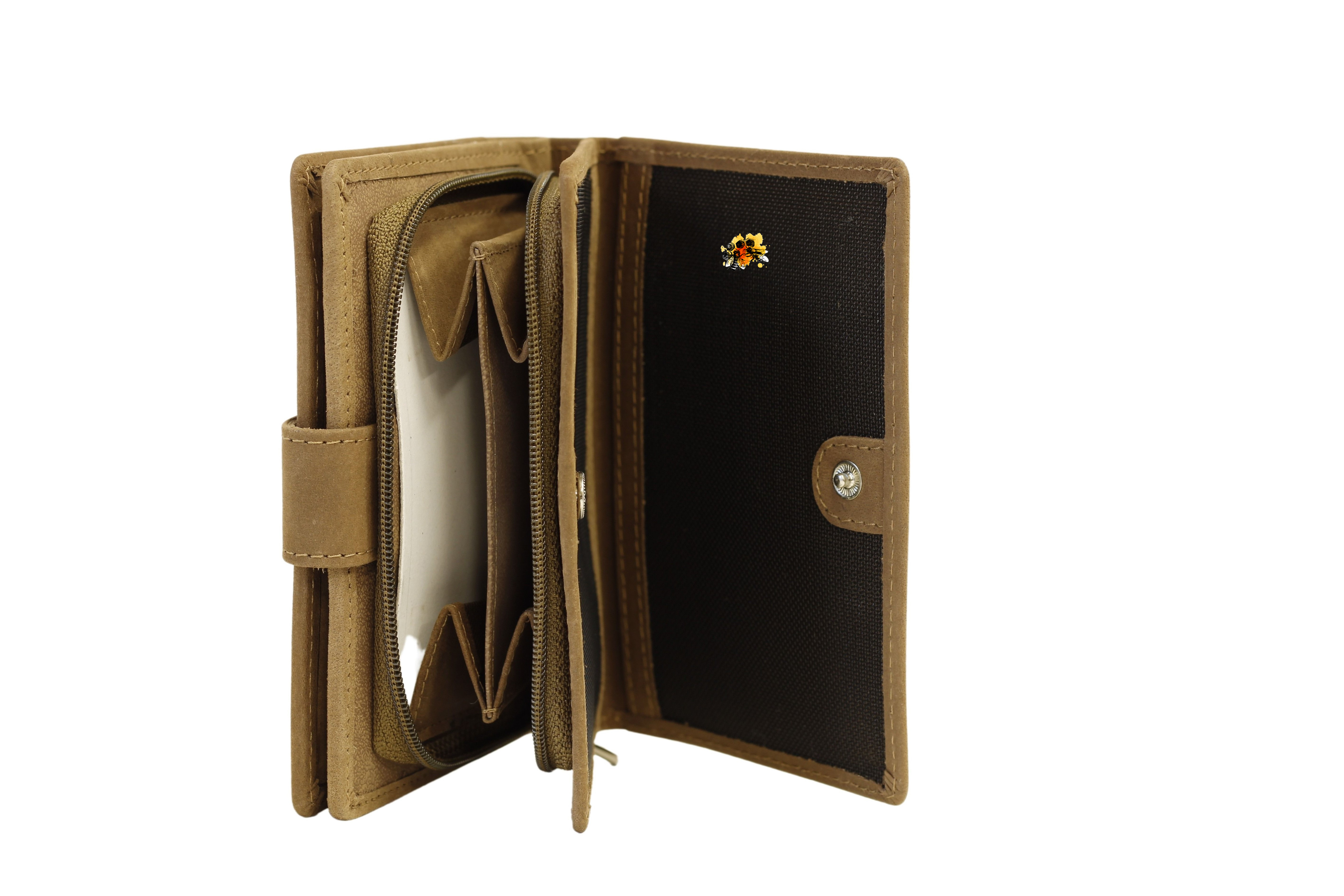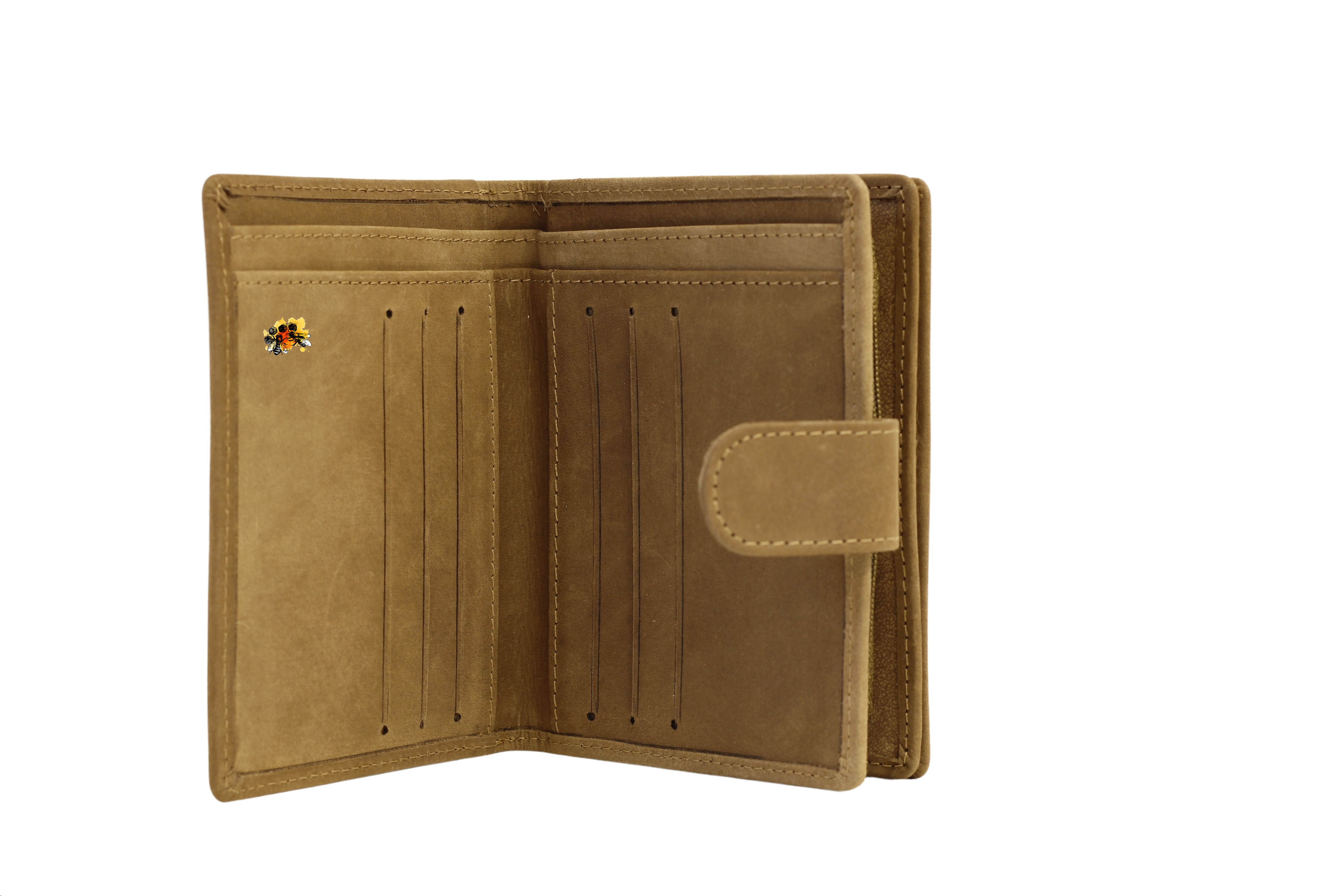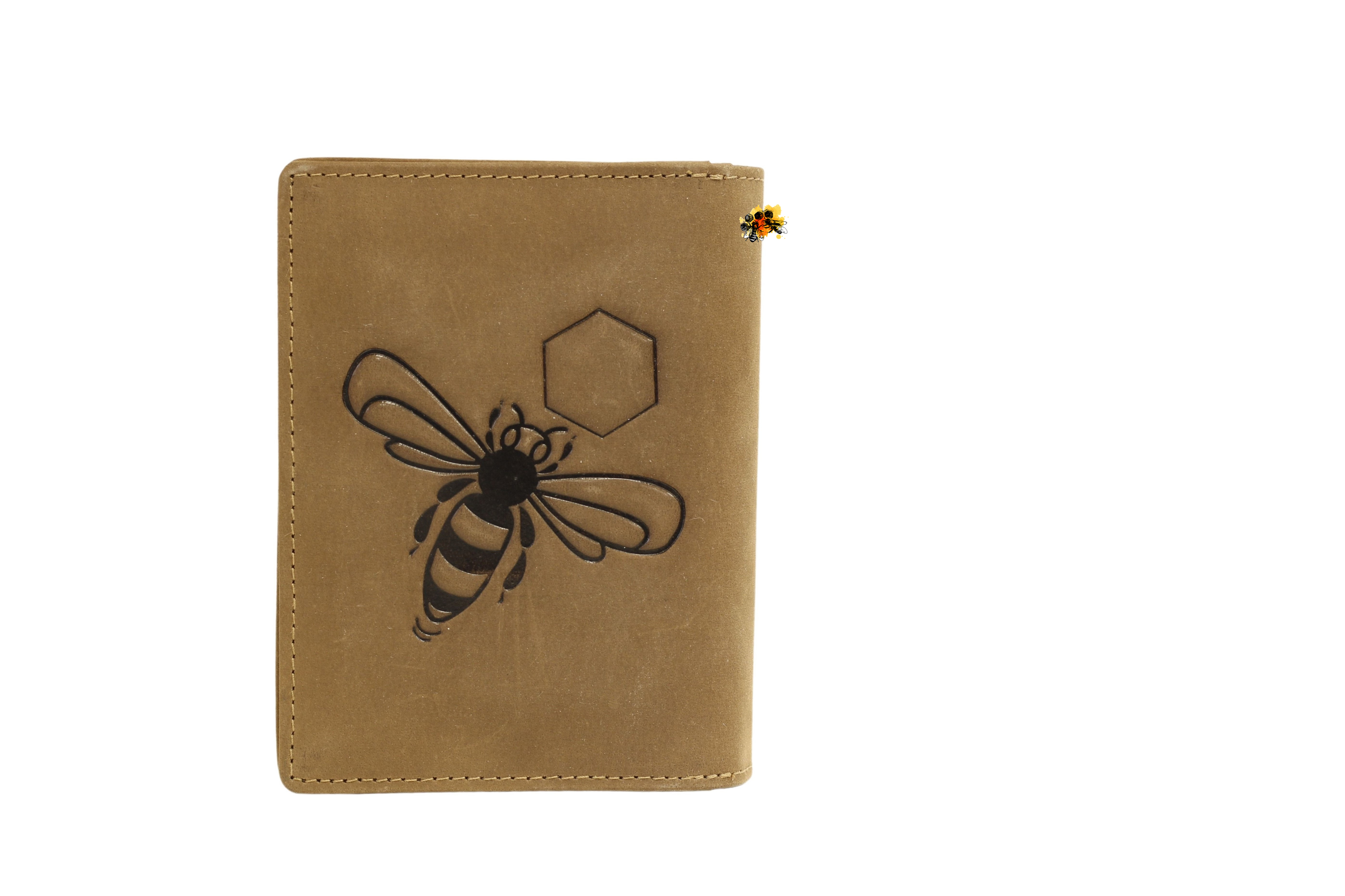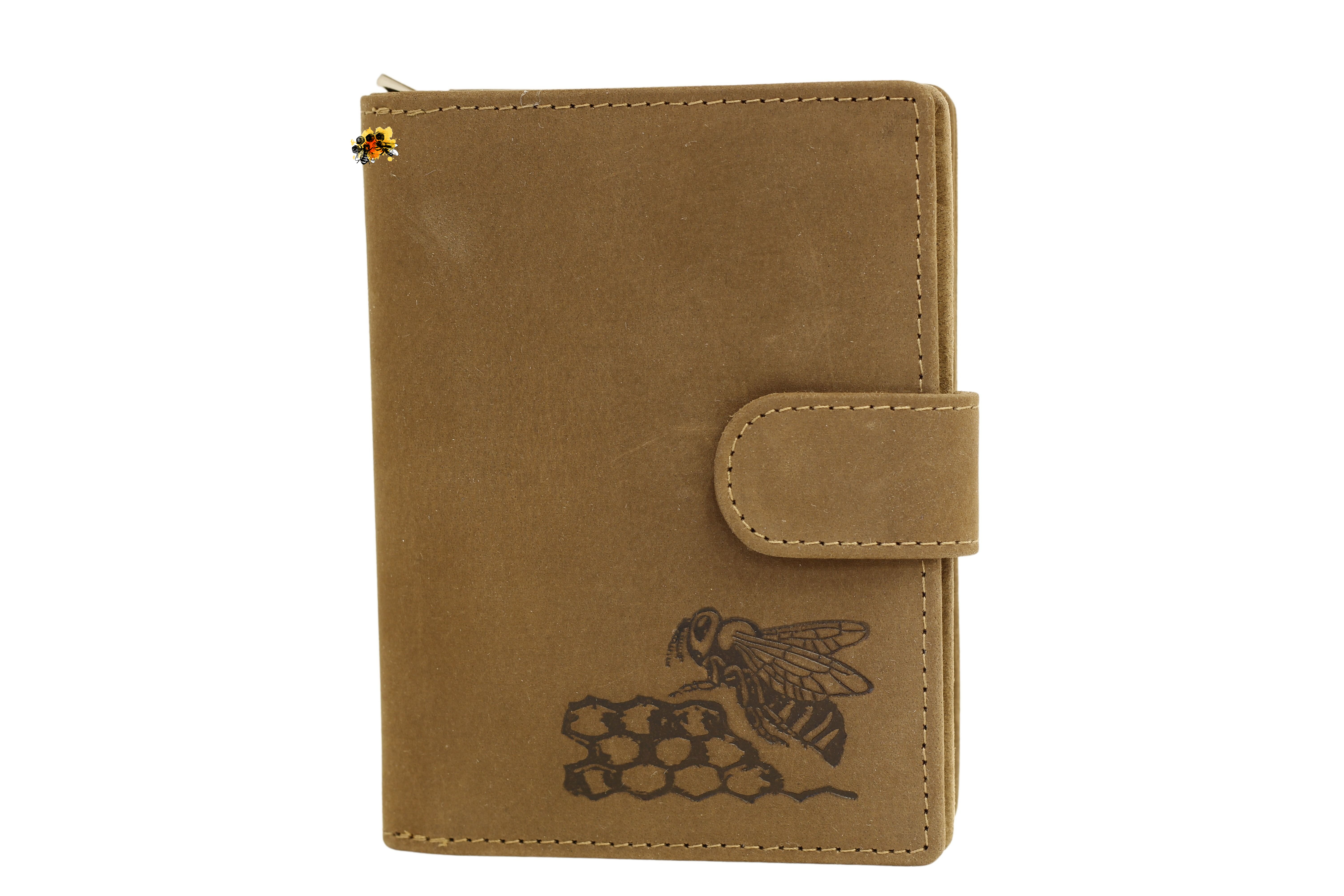 Ein ehrenwerter Platz für ihr hart verdientes Honiggeld - dieses schön verarbeitete Portemonnaie aus geschliffenem Rindsleder, wirkt durch die beiden eingeprägten Bienenbildern an Vorder- und Rückseite besonders edel.