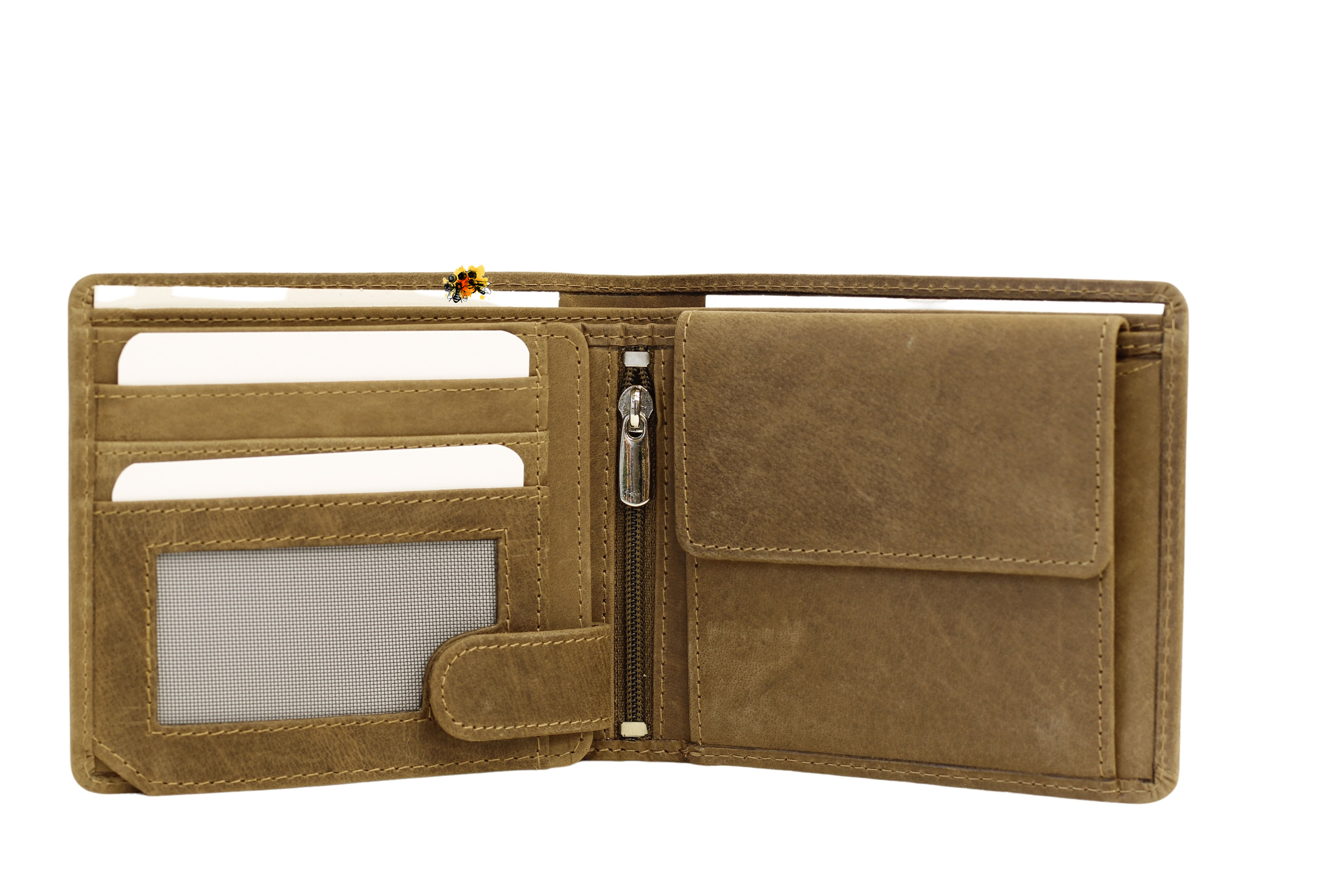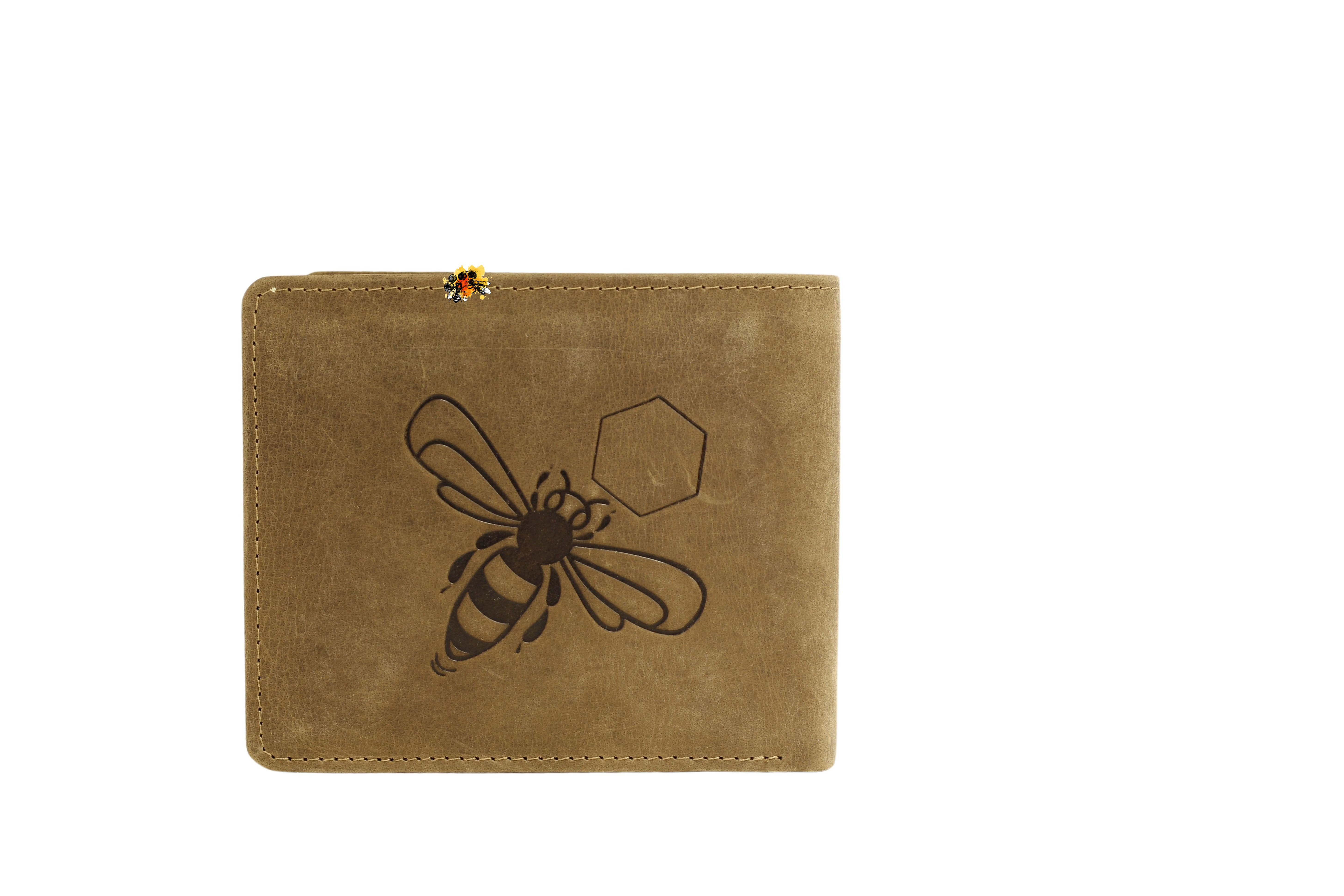 Ein ehrenwerter Platz für ihr hart verdientes Honiggeld - dieses schön verarbeitete Portemonnaie aus geschliffenem Rindsleder, wirkt durch die beiden eingeprägten Bienenbildern an Vorder- und Rückseite besonders edel.