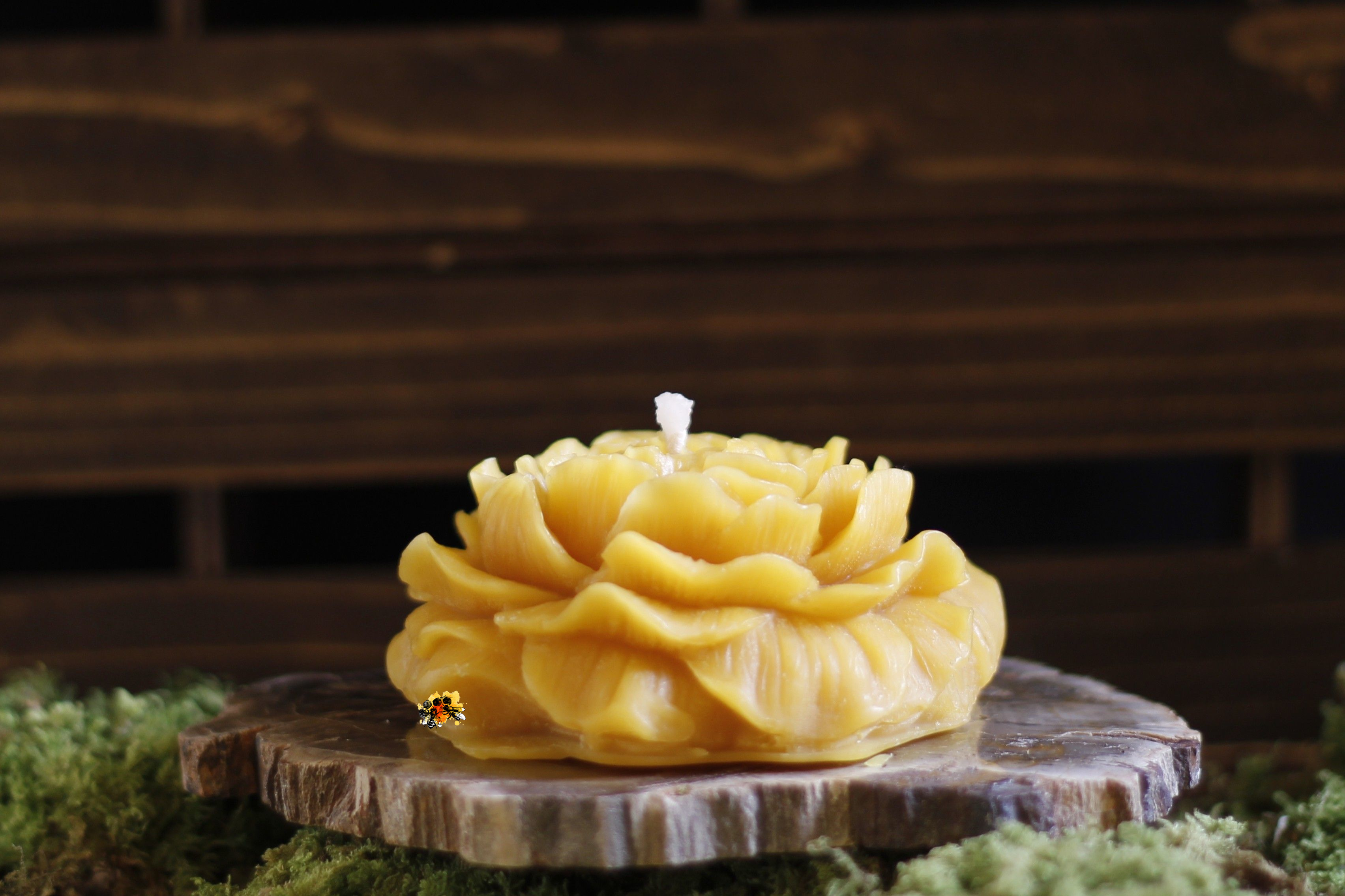 Produktinformationen "Blüte "Pfingstrose" Bienenwachskerze"