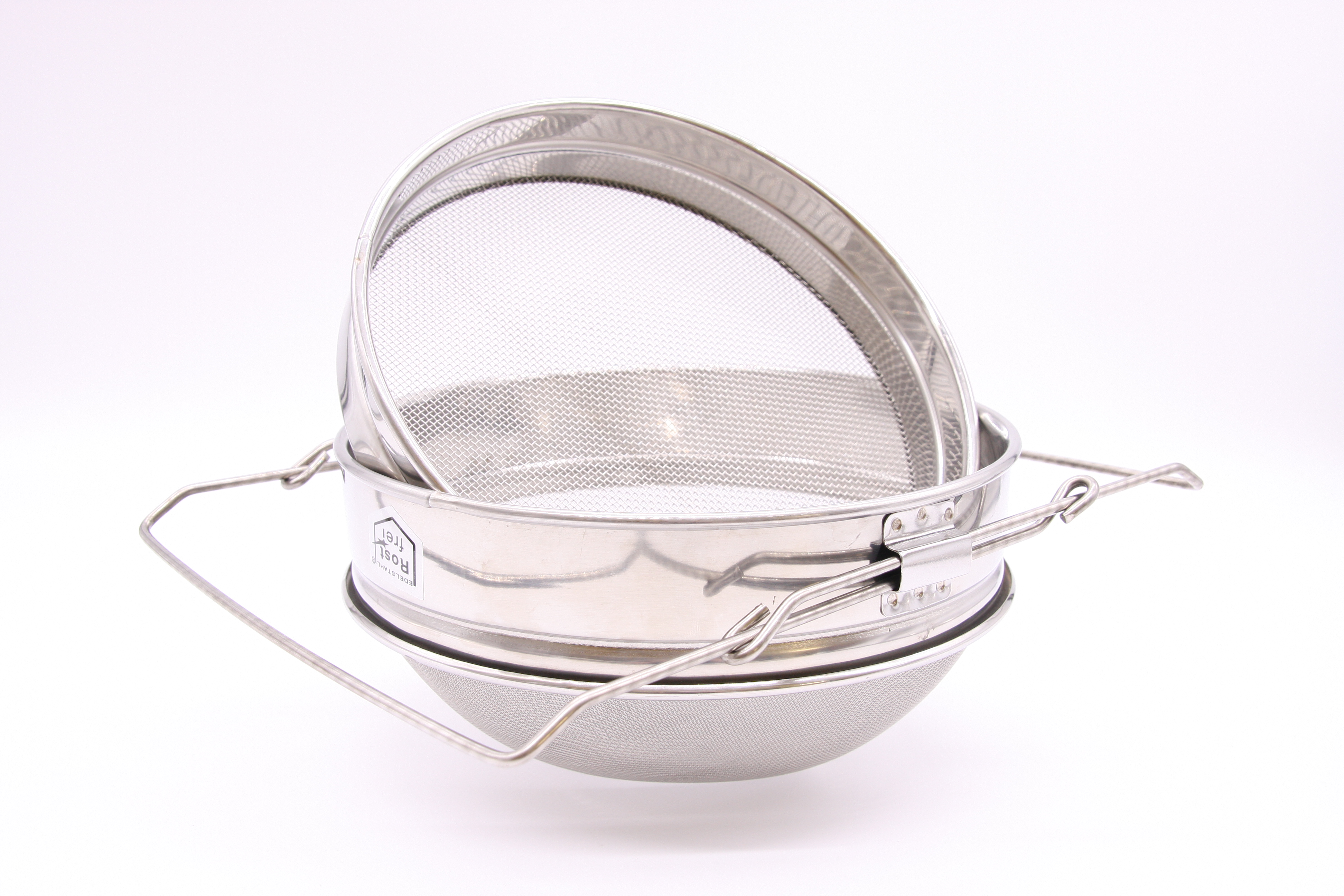 - Ø ca. 24 cm großes Doppelsieb aus Edelstahl