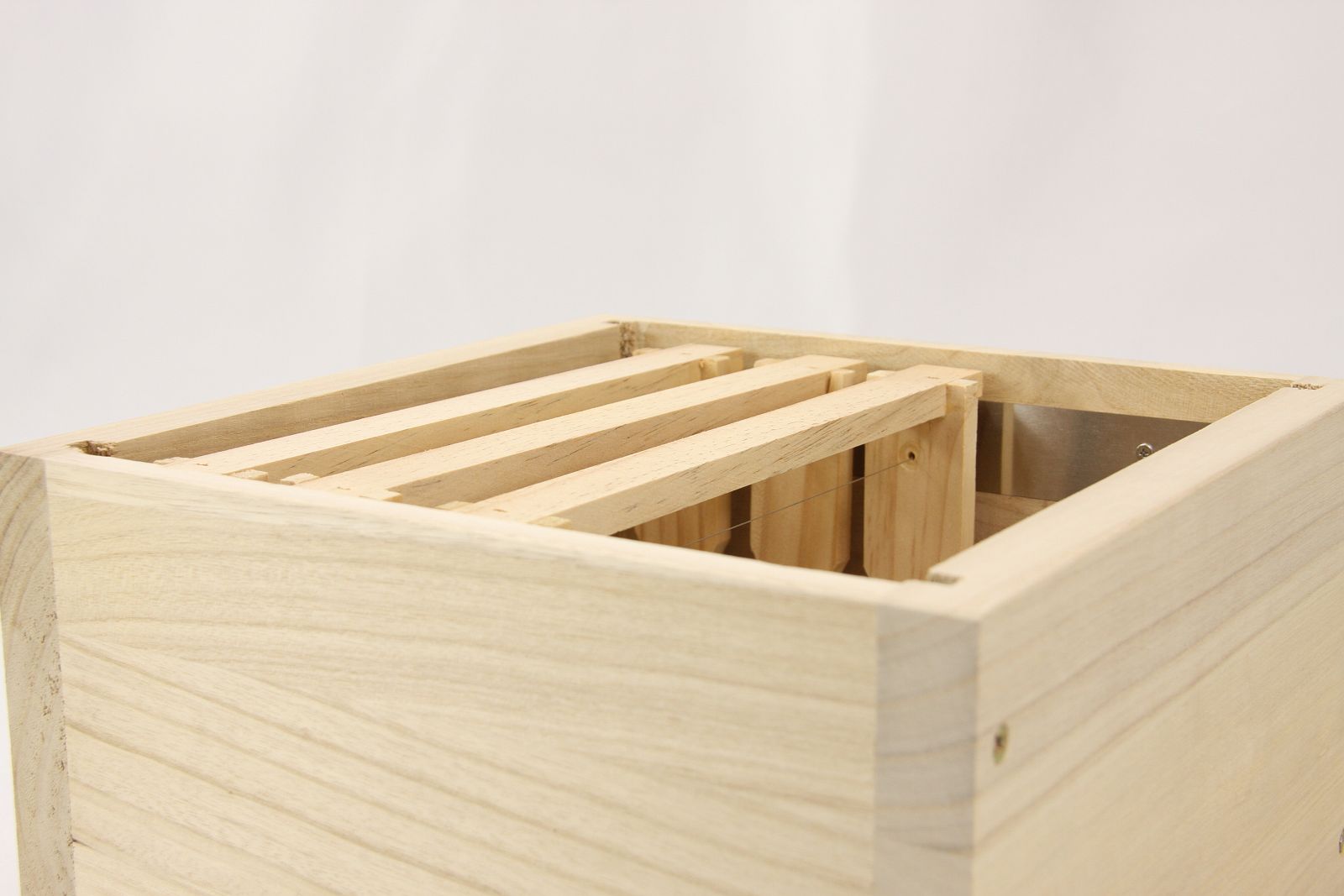 Holzzarge, passend für das Mini Plus System. 28 x 28 x 17 cm inkl. montierter Auflageschiene. Geeignet für 6 Rähmchen (nicht im Lieferumfang enthalten).
